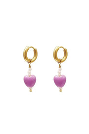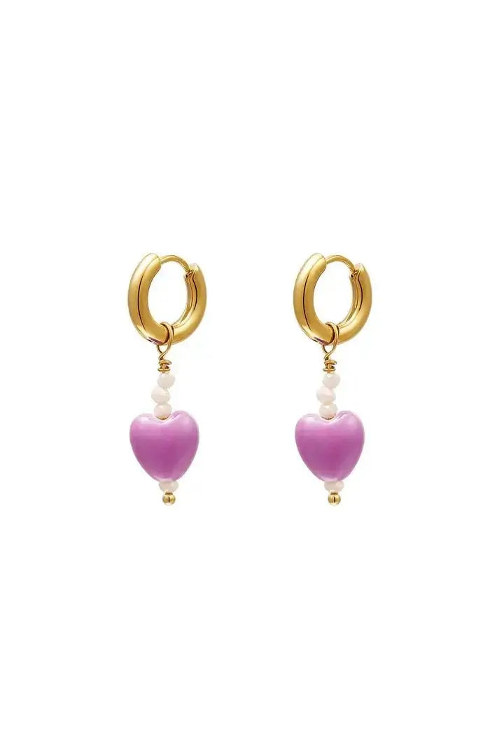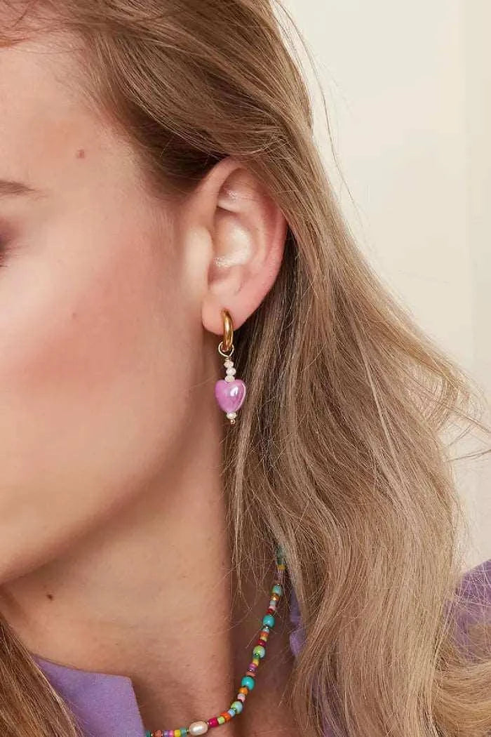 Hippe oorbellen met gekleurde kraaltjes en paars hart