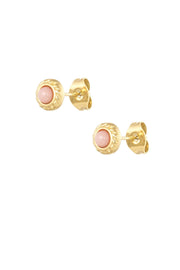 Deze ronde oorstekers met natuursteen zijn een subtiele en stijlvolle toevoeging aan je sieradencollectie. De goudkleurige afwerking met een roze of groen steentje straalt pure elegantie uit.