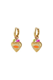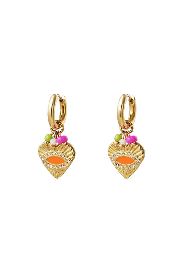 Super leuke en kleurrijke oorbellen waar je iedere outfit vrolijk mee maakt! Deze goudkleurige oorbellen kralen kleurrijk zijn de perfecte aanvulling op jouw sieradencollectie. Met hun hartvormige hanger en oranje hart stelen ze gegarandeerd de show. Geen zorgen over verkleuring, want deze beauties zijn gemaakt van stainless steel. Ideaal voor wie op zoek is naar fleurige en kleurrijke oorbellen.