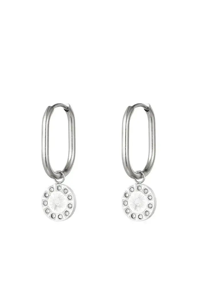 Deze prachtige zilverkleurige oorbellen zijn een echte aanrader voor jou als sieradenliefhebber! Ben jij klaar voor een vleugje zon in je leven? Onze oorbellen met zonnige bedel en zirkonen steentjes zijn dan precies wat je zoekt. Deze zilveren ovale oorbellen zijn voorzien van een ronde bedel, ingelegd met schitterende zirkonen steentjes, die een elegante en luxe uitstraling geven. Maak je outfit compleet en laat de zon dagelijks schijnen met deze juweeltjes!