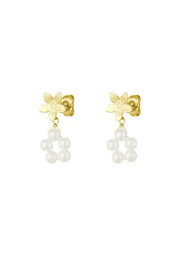 Oorbellen parels en bloem goud