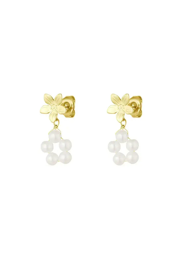 Deze oorbellen combineren een subtiel bloemontwerp met parels, wat zorgt voor een stijlvolle en vrouwelijke look. Perfect voor een verfijnde touch bij iedere outfit.