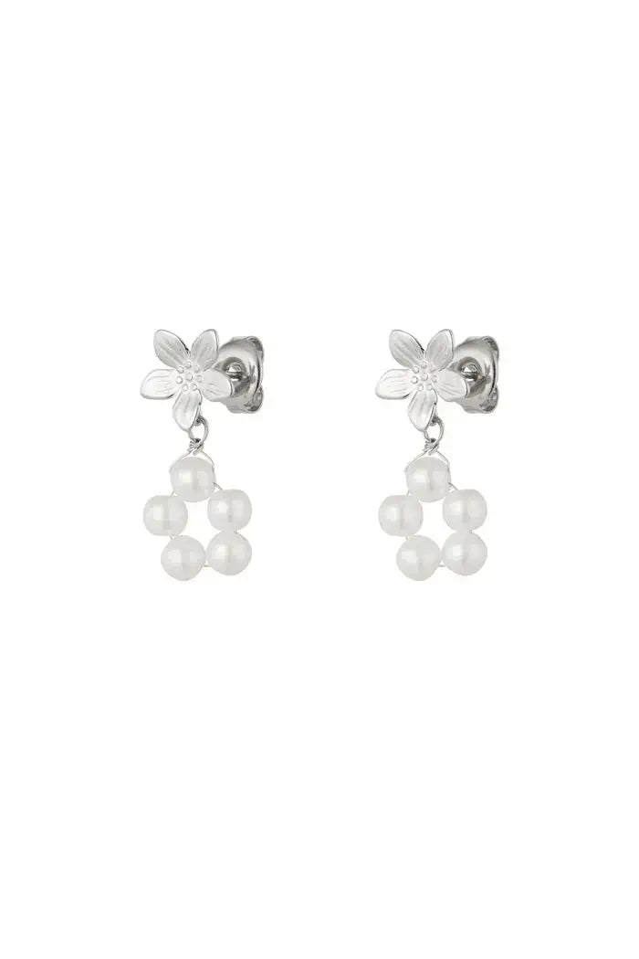 Oorbellen parels en bloem zilver
