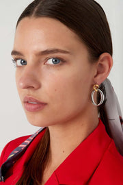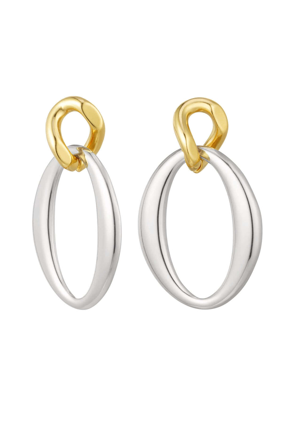 Stijlvolle dames oorbellen met een speels design. Een gouden schakel en een zilverkleurige ovale ring zijn prachtig met elkaar verbonden. Perfect als je houdt van de combinatie van goud en zilver.