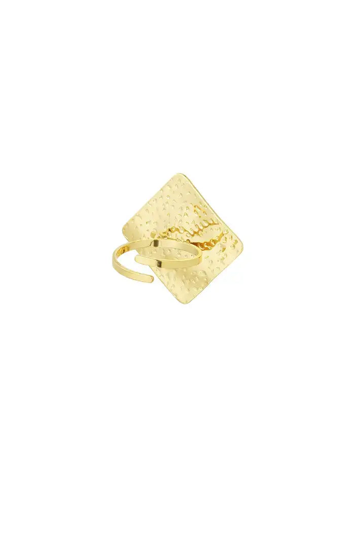 Deze opvallende ring in de vorm van een grote ruit trekt direct de aandacht. De speelse structuur in de ruit geeft de ring een unieke en trendy uitstraling.