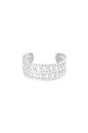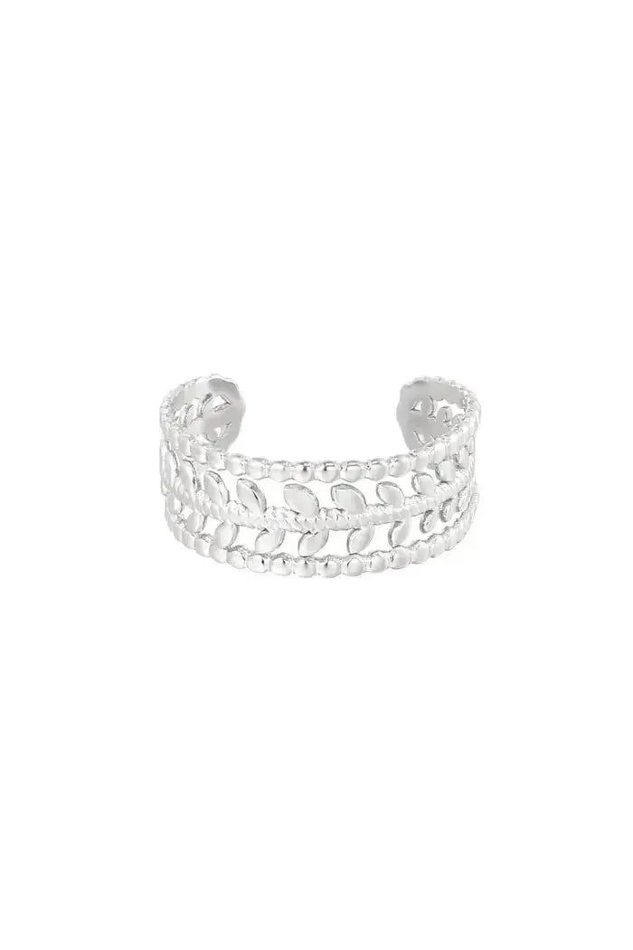 De barokdetails maken deze ring uniek en vol karakter. Combineer hem met andere zilverkleurige sieraden voor een luxe look of draag hem solo als subtiele statement piece.