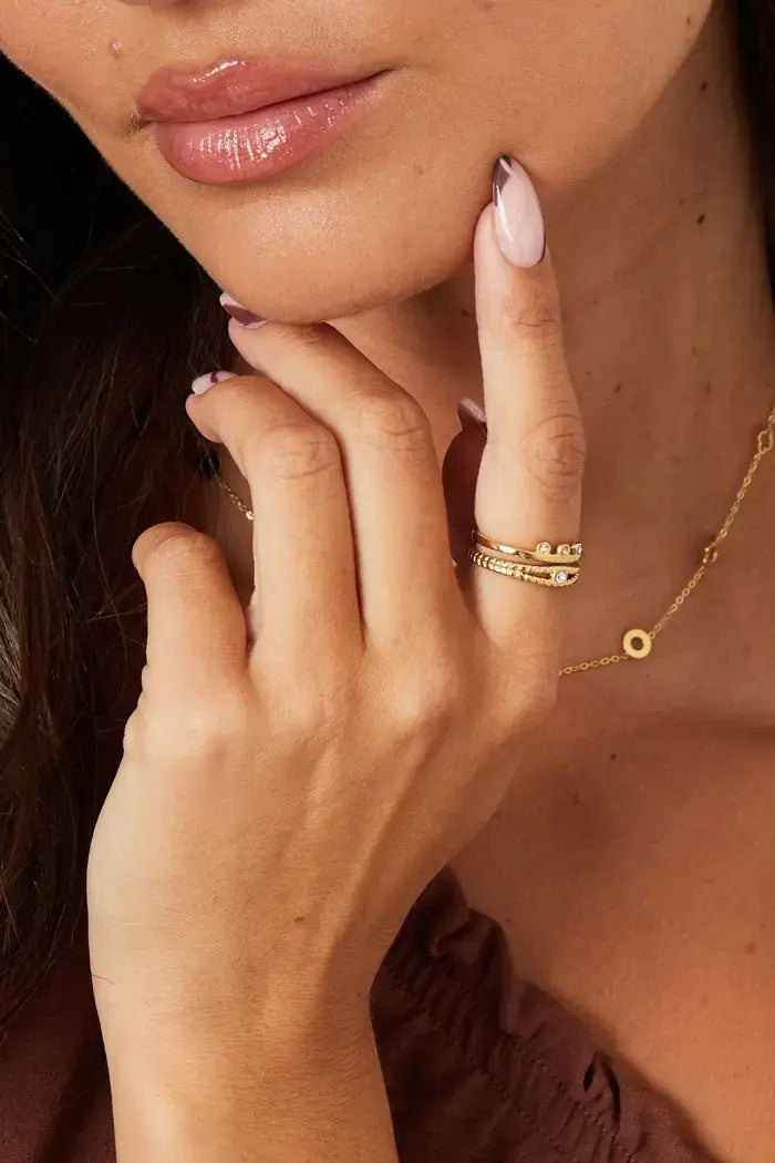 De fonkelende strass stenen zorgen voor een subtiel schitterend effect, terwijl de dubbele band extra diepte en stijl toevoegt. Combineer deze ring met een armband of een ketting uit onze collectie voor een tijdloze en elegante look.